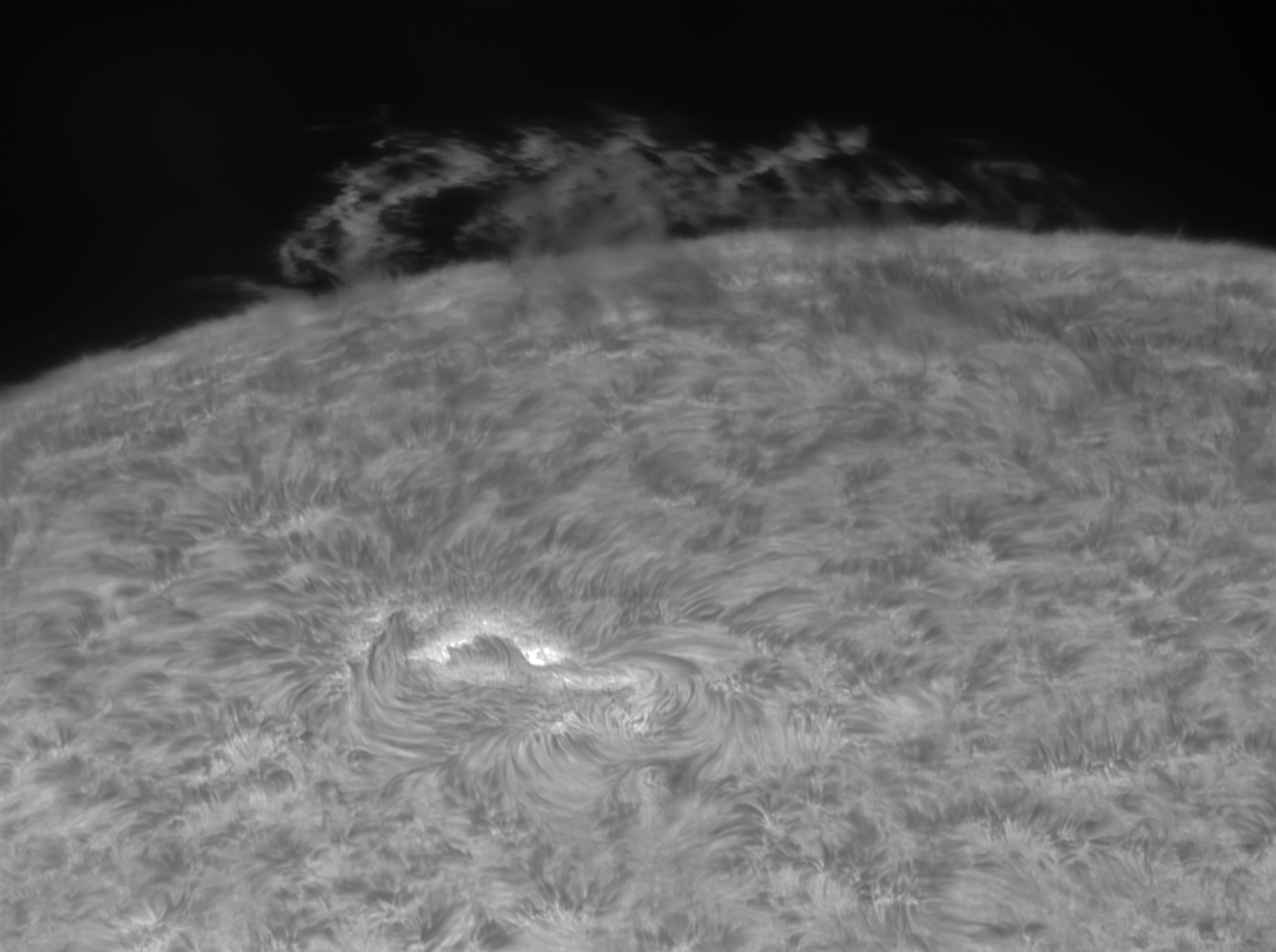 | - Lens / Camera : | Home-build Refract iStar H-alpha Lens 150mm f/10 - Baader TZ4 - Sol. Spectrum 0.5A° + Lunt40 - P1 M-Max |